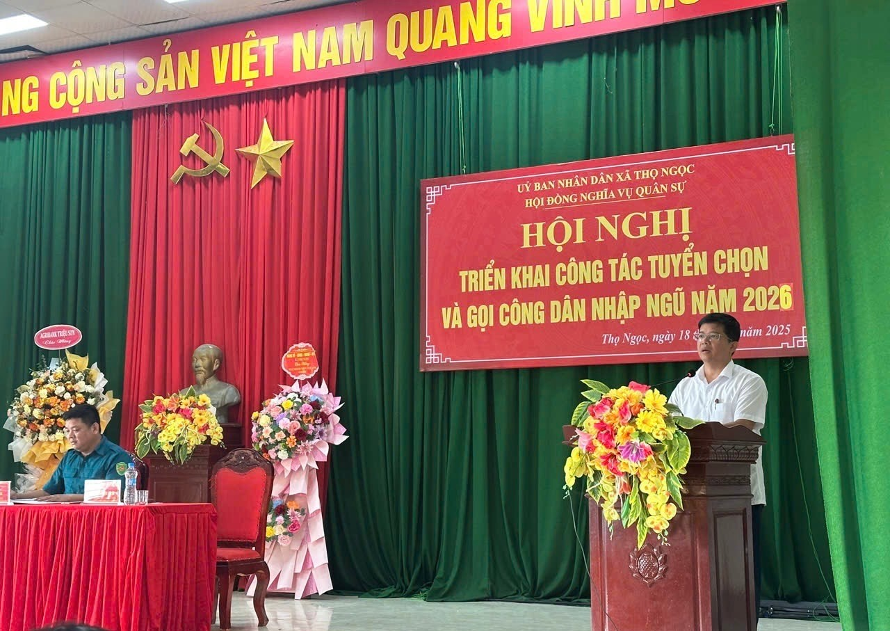Chiều ngày 18/10/2025 Hội đồng nghĩa vụ Quân sự xã Thọ Ngọc tổ chức hội nghị triển khai công tác tuyển chọn và gọi công dân nhập ngũ năm 2026.
