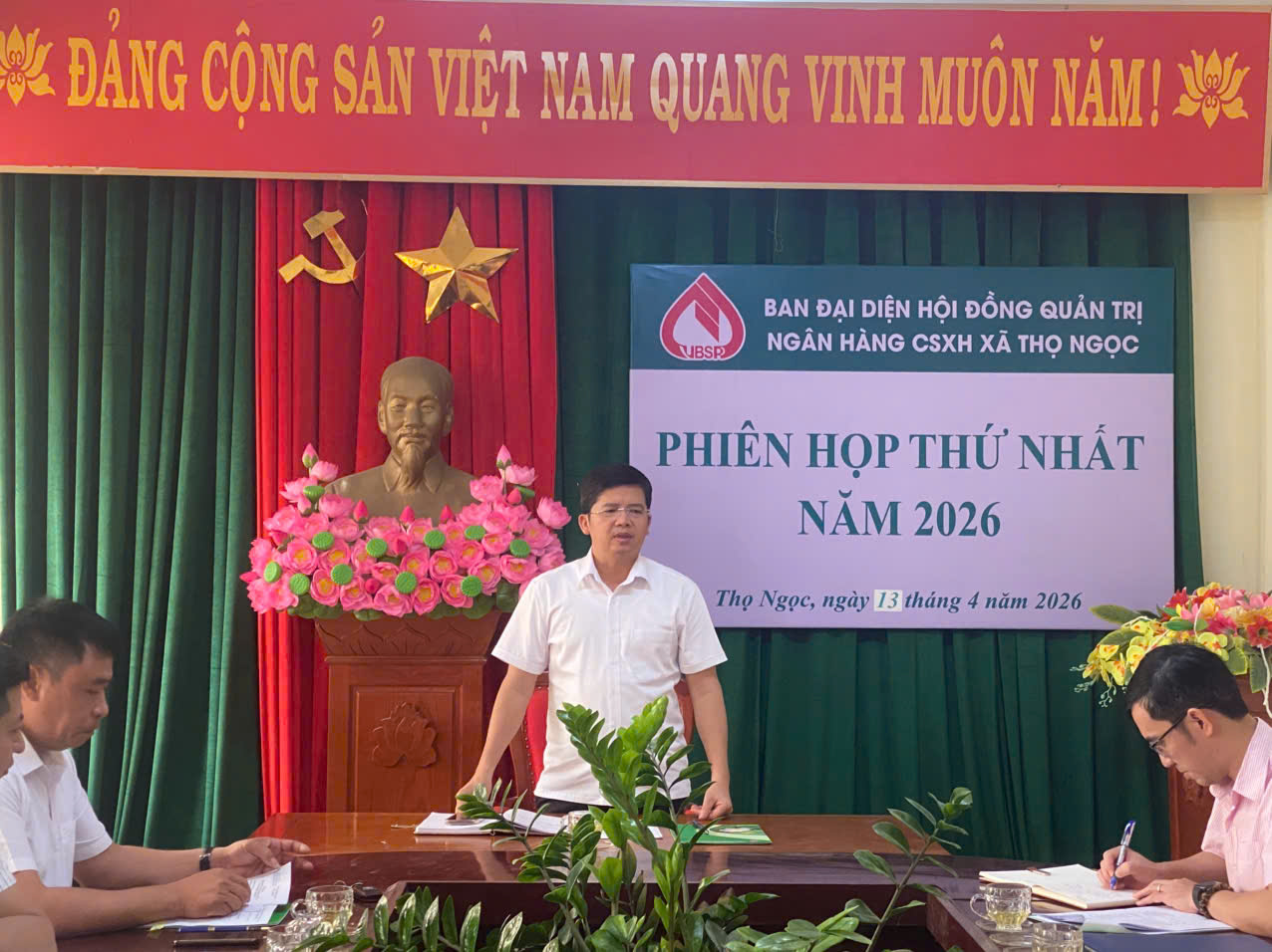 Sáng ngày 13/4/2026, Ban đại diện Hội đồng quản trị Ngân hàng Chính sách xã hội xã Thọ Ngọc tổ chức Phiên họp thứ nhất năm 2026 nhằm đánh giá kết quả hoạt động tín dụng chính sách quý I và triển khai nhiệm vụ quý II năm 2026.