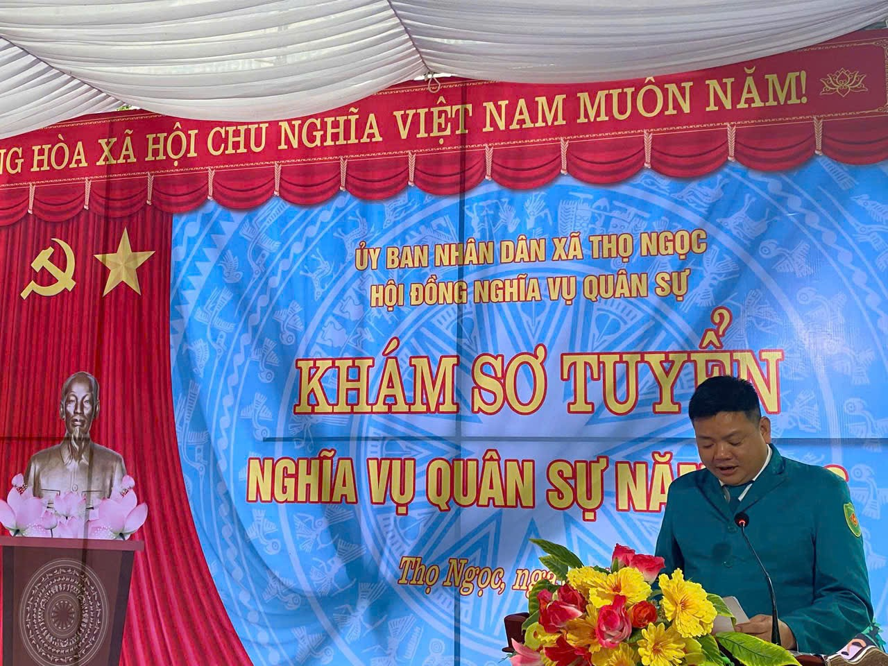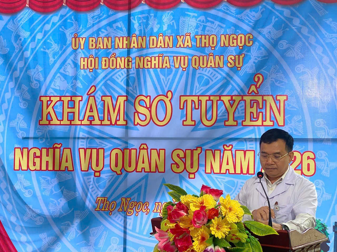 Đồng chí Nguyễn Ngọc, Phó Bí thư Đảng uỷ, Chủ tịch UBND xã, Chủ tịch Hội đồng NVQS xã phát biểu khai mạc buổi lễ, đồng chí nhấn mạnh: Đây là đợt khám sơ tuyển nghĩa vụ quân sự đầu tiên được tổ chức kể từ khi xã Thọ Ngọc được thành lập trên cơ sở sáp nhập 4 xã trước đây, đánh dấu bước khởi đầu mới của chính quyền, nhân dân và thanh niên xã nhà trong công tác quốc phòng – an ninh, xây dựng và bảo vệ Tổ quốc trong giai đoạn mới.
