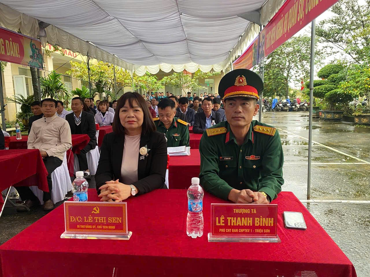 Về dự khai mạc khám tuyển có đồng chí Lê Thị Sen, Bí thư Đảng bộ, Chủ tịch HĐND xã; đồng chí Nguyễn Ngọc Quang, Phó Bí thư Đảng uỷ, Chủ tịch UBND xã, Chủ tịch Hội đồng NVQS xã; các đồng chí trong BTV Đảng ủy; lãnh đạo UBND, Uỷ ban MTTQ xã; lãnh đạo các phòng, ngành, cơ quan, đơn vị; thành viên Hội đồng NVQS xã; thành viên tổ khám tuyển; các đồng chí Bí thư chi bộ, trưởng các thôn, thôn đội trưởng và thanh niên trong độ tuổi khám sức khỏe NVQS.